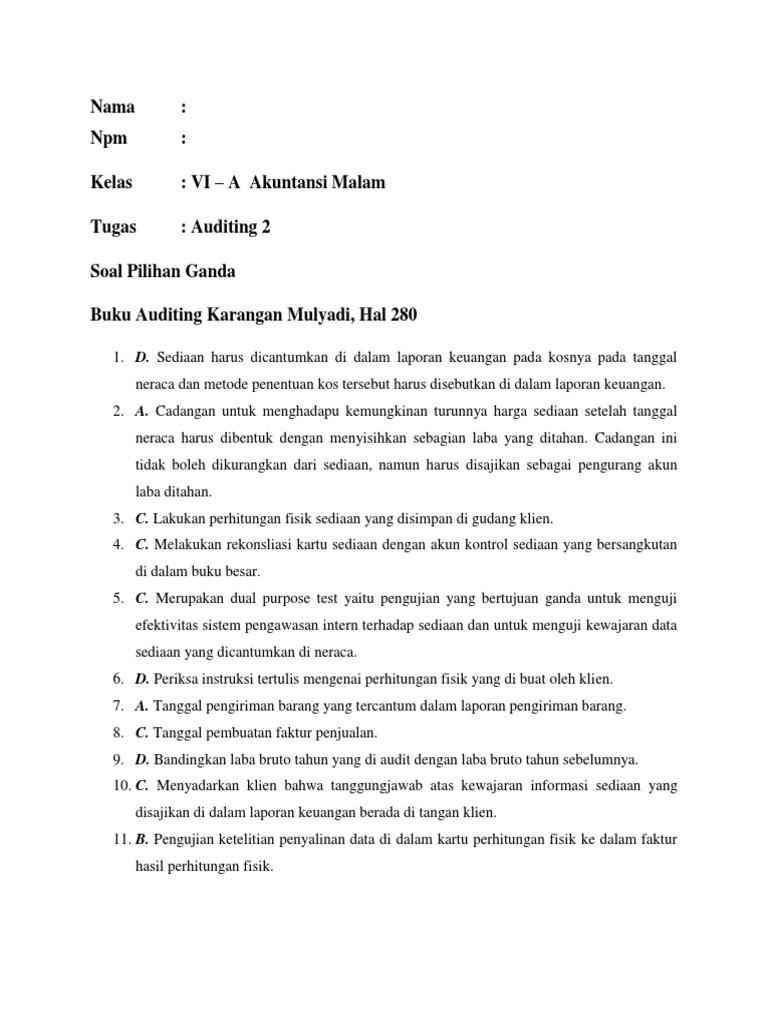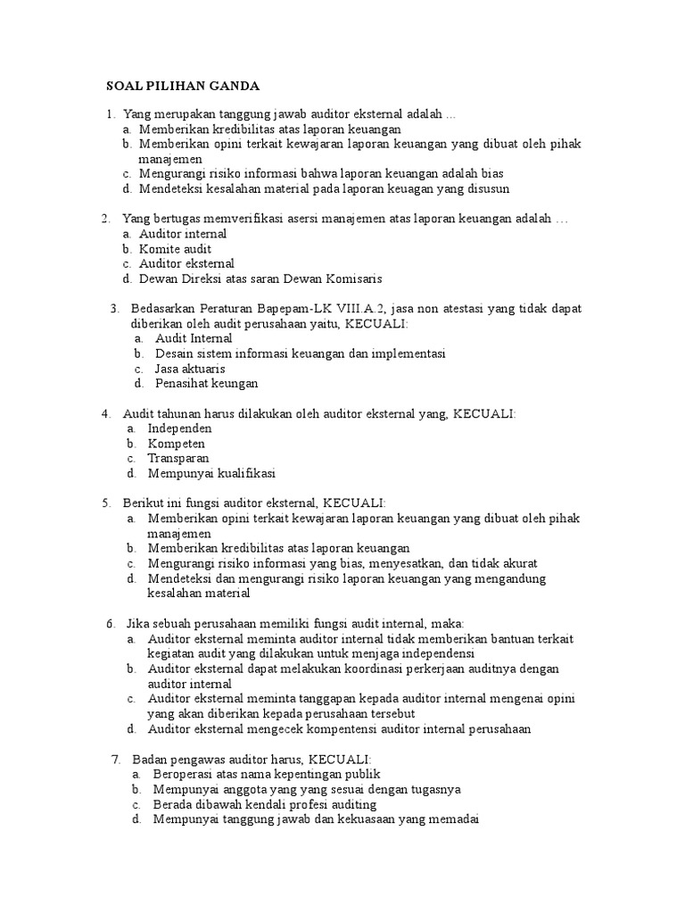 Soal Auditing 2 Pilihan Ganda / Https Natawidnyana Files Wordpress Com 2009 12 Idcpa Contoh Soal Ujian Pdf / We did not find results for:. Check spelling or type a new query. We did not find results for: Maybe you would like to learn more about one of these? Soal auditing 2 pilihan ganda.