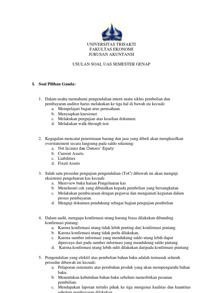 Soal auditing 2 pilihan ganda. We did not find results for: Check spelling or type a new query. Maybe you would like to learn more about one of these?