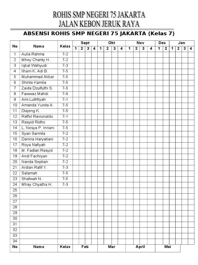 Untuk contoh di bawah ini saya misalkan kelas x tkj 1. Silahkan anda buat terlebih dahulu struktur absensi sesuai dengan kebutuhan atau anda juga bisa membuatnya seperti gambar dibawah. Kekurangan absensi karyawan harian manual adalah adanya indikasi tindak kecurangan karyawan karena report bisa diatur sedemikian rupa agar tetap hadir dan absensi. Bahan terbuat dari acrylic tebal 2mm, warna hitam, tulisan emas, dengan gantungan kayu, struktur kuat dan eksklusif. Materi prakarya dan kewirausahaan (pkwu) kelas xii semester ganjil tahun 2021/2022 Lebih cepat mengenal anak dengan absensi (memanggil nama tiap minggu) 3. Jika ayah bunda membuthkan buku tabungan anak maka bunda juga membutuhkan buku tanda terima pencairan tabungan sebagai laporan dan bukti tabungan telah dibayarkan kepada anak. Pencahayaan pertemuan 3 materi pptx : D budi murni 1 medan. Bidang studi manajemen bidang studi; Kolom pertanyaan tanpa judul di ganti menjadi "mata pelajaran". Buku absen sd tahunajaran 2019/2020. Selanjutnya daftar tersebut akan terekam didatabase pastibosonline.
