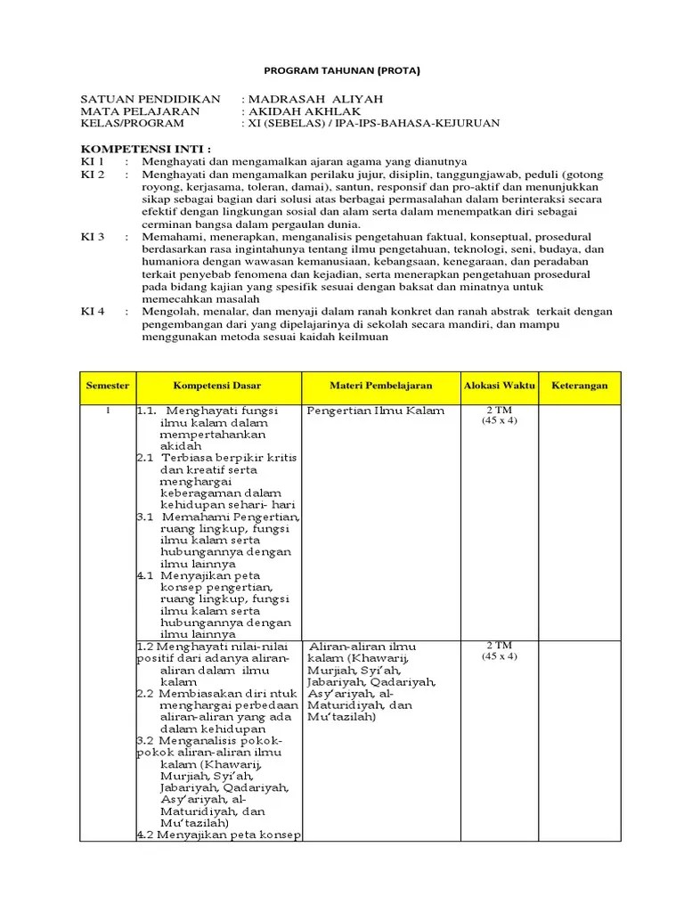 Prota Promes K13 Madrasah Aliyah / Uue7xl2wer0kim - Kkm prota dan promes madrasah ibtidaiyah (mi) disusun sesuai dengan kma nomor 183 tahun 2019 tentang kurikulum pai dan bahasa arab di .
